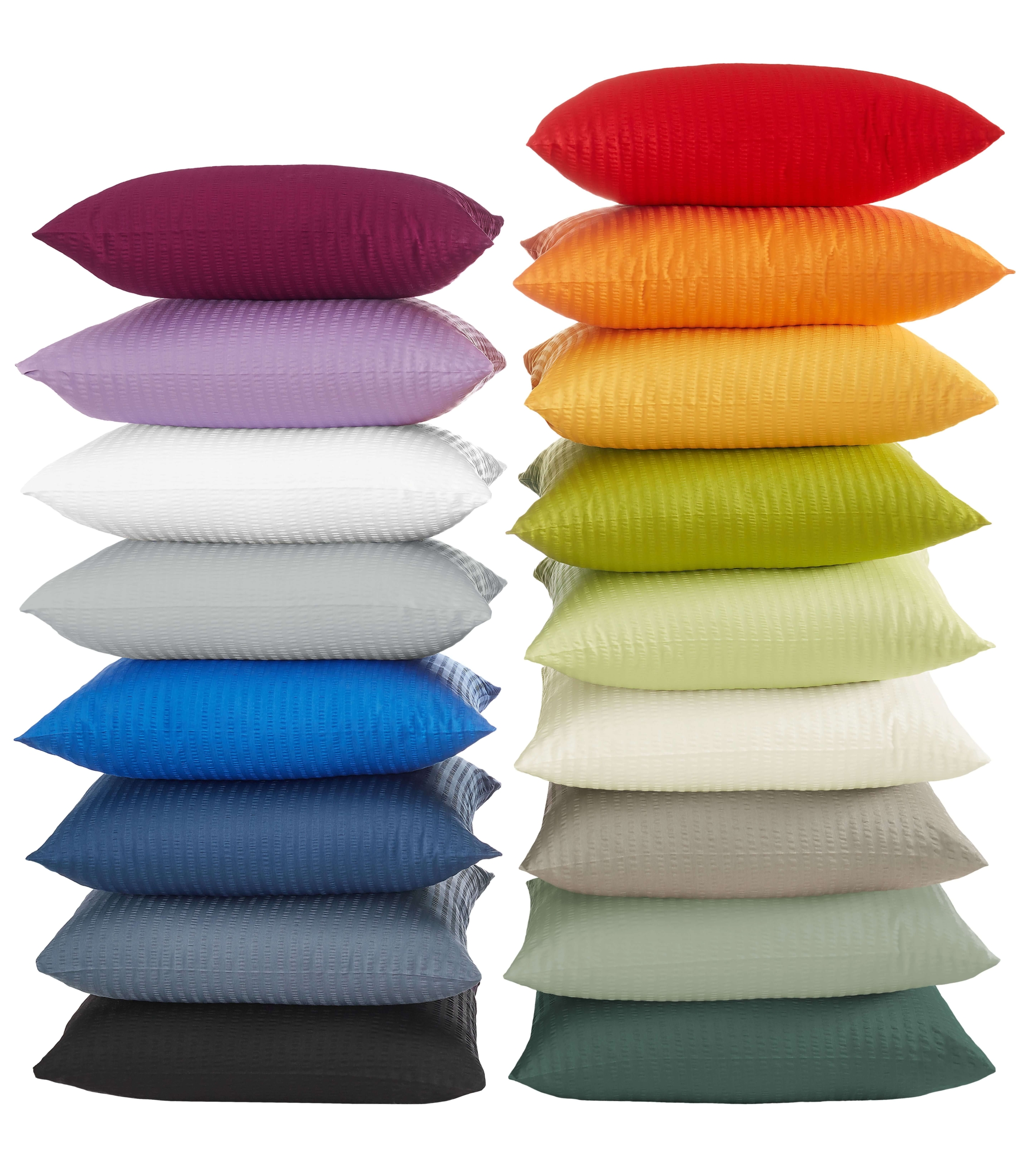 Das Baumwollgewebe der Seersucker-Bettwäsche weist abwechselnd glatte und geraffte Streifen auf. Alternativ werden nach dem Weben faserquellende Substanzen aufgebracht. Seersucker wird zu den sogenannten "unechten Kreppen" gezählt. Im Vergleich zu Mako-Satin oder Biber fühlt sich die Bettwäsche durch ihre unebene Struktur rauer an. Sie liegt deshalb nicht vollständig auf der Haut auf und sorgt für eine kühlende Luftzirkulation. Im Gegensatz zum Renforcé Seersucker, hat der Satin Seersucker einen schöneren Glanz und eine seidige Oberfläche.